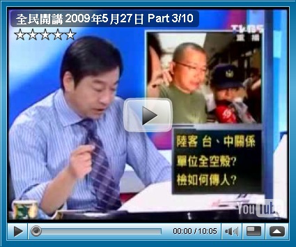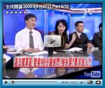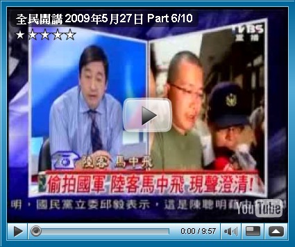五月二十七日晚間現場直播的二一全民開講節目,令人震驚地,居然出現了涉嫌違法拍攝通資指揮部的中國旅客馬中飛的現場calling。莫名其妙的製作單位,馬上用了「現聲澄清」的字幕,配合主持人與現場名嘴的相互唱和,在至少五至十分鐘的「LIVE專訪」中,巧妙地幫這嫌犯作了單方面的澄清。